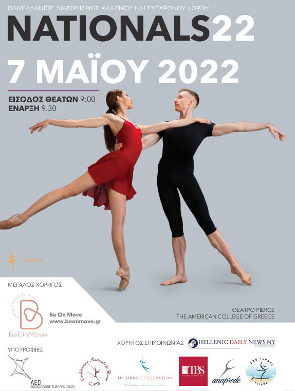 Συμμετοχή και φέτος στον Πανελλήνιο Διαγωνισμό Κλασικού & Σύγχρονου Χορού NATIONALS 2022 Nationals Dance Greece με συμμετοχές από τις καλύτερες σχολές Ελλάδας και Κύπρου και πολλές εξαιρετικές διεθνείς συμμετοχές από τρίτες χώρες.