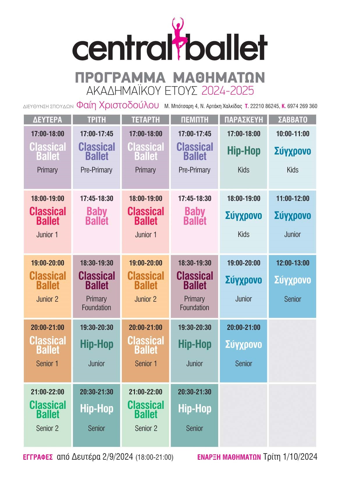 Το πρόγραμμα μαθημάτων της σχολής ενδέχεται να τροποποιηθεί ελαφρώς και συνιστούμε σε κάθε περίπτωση να το επιβεβαιώσετε με ένα τηλέφωνο στη γραμματεία μας.